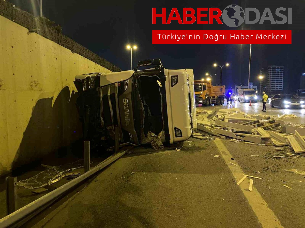Maltepede kontrolden çıkan tır yol ayrımından D100 kara yoluna düştü 1 yaralı