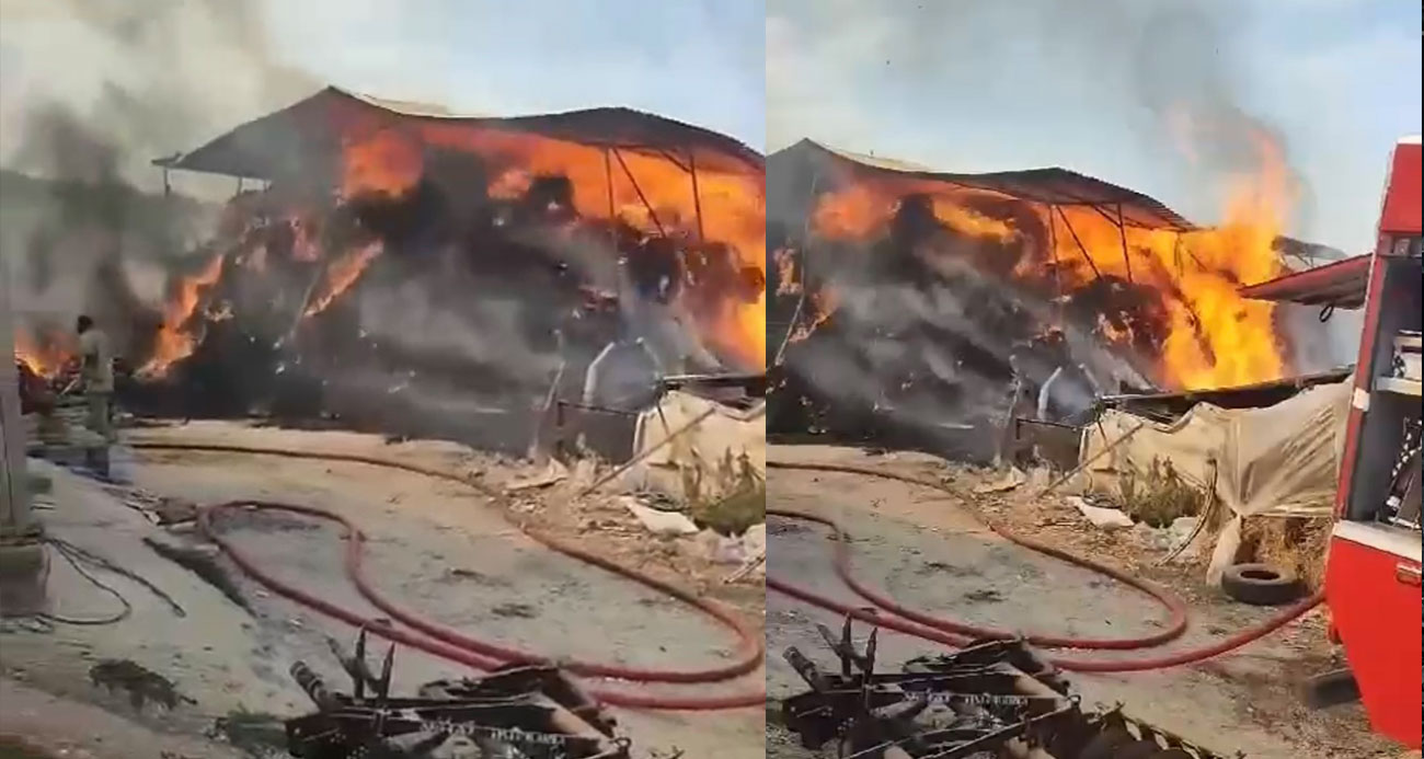 Çiftlikte bulunan yem dolu depo alev alev yandı