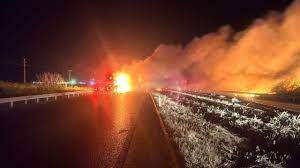 Bursa Balıkesir Karayolunda TIRda çıkan yangın sazlık alana sıçradı