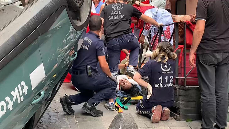 Beyoğlunda yol kenarındaki kadına çarpan otomobil takla attı