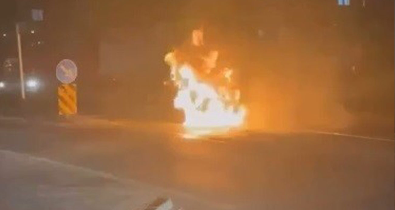 Karsta park halindeki halk otobüsü alev alev yandı o anlar kamerada