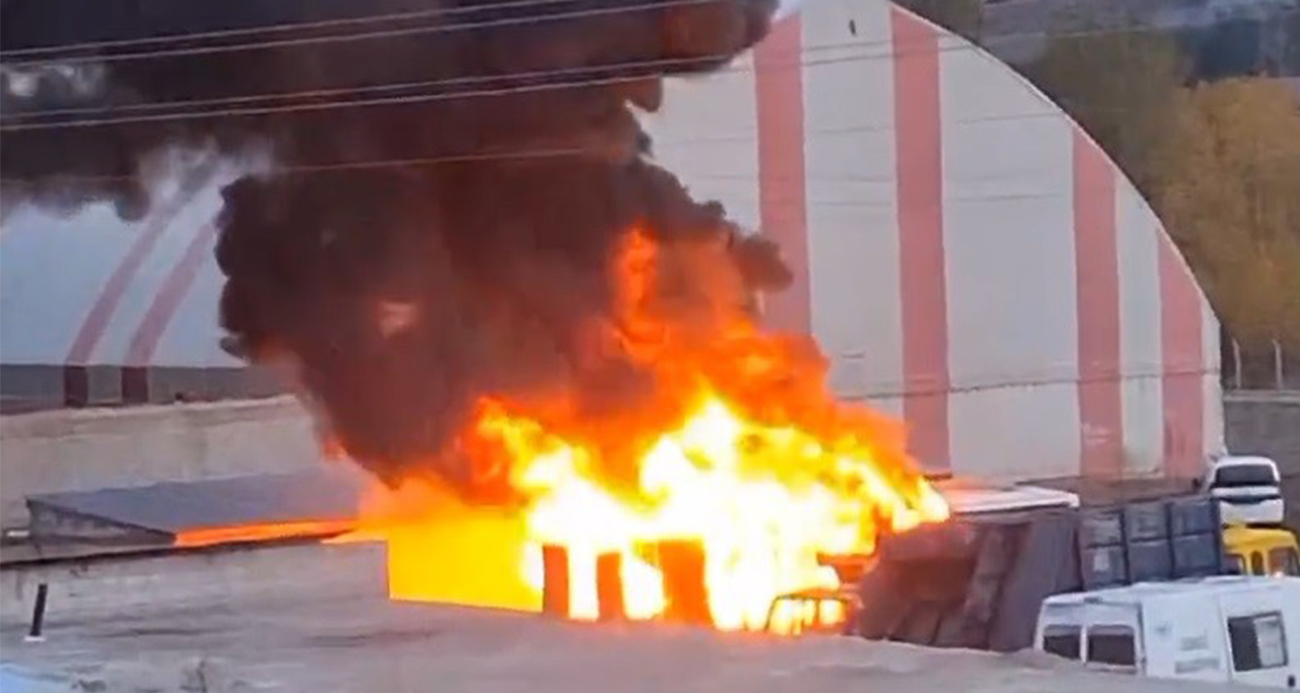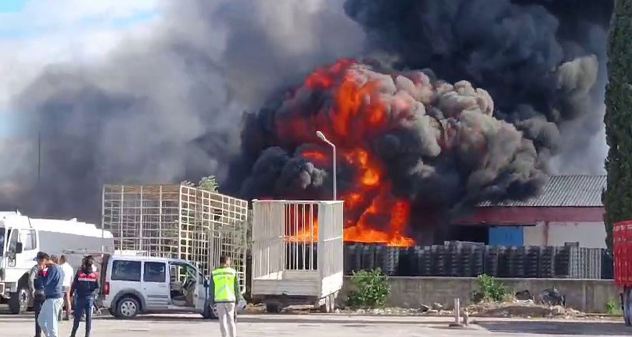Binlerce plastik kasa alev alev yandı dumanları 30 kilometre uzaklıktan görüldü