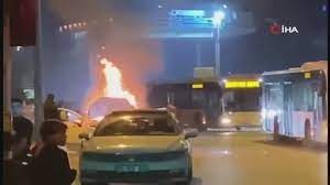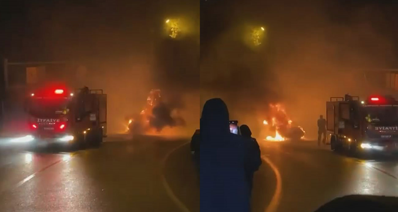 Ataşehirde seyir halindeki araç alev alev yandı