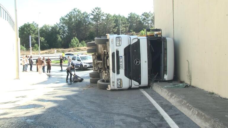 Arnavutköyde virajı alamayan kamyon yan yattı 1 yaralı