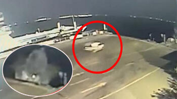 Hafif ticari araç feribota binerken denize uçtu sürücü can simidi atılarak kurtarıldı