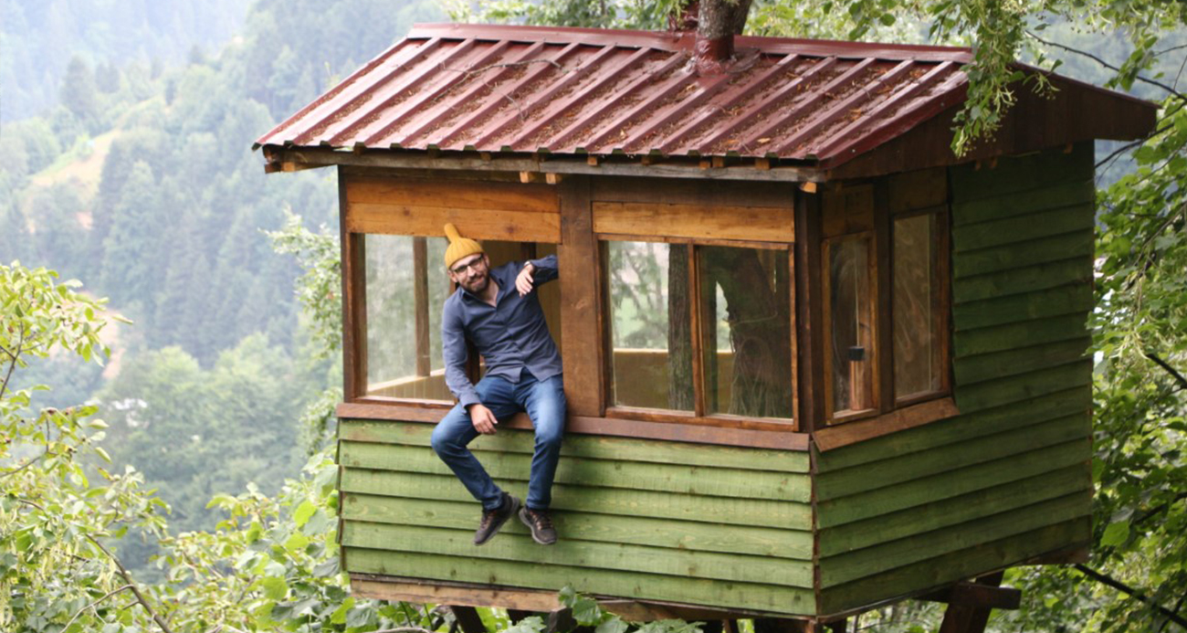 Rizeli öğretmen tatilini ağacın üzerine yaptığı evde geçiriyor