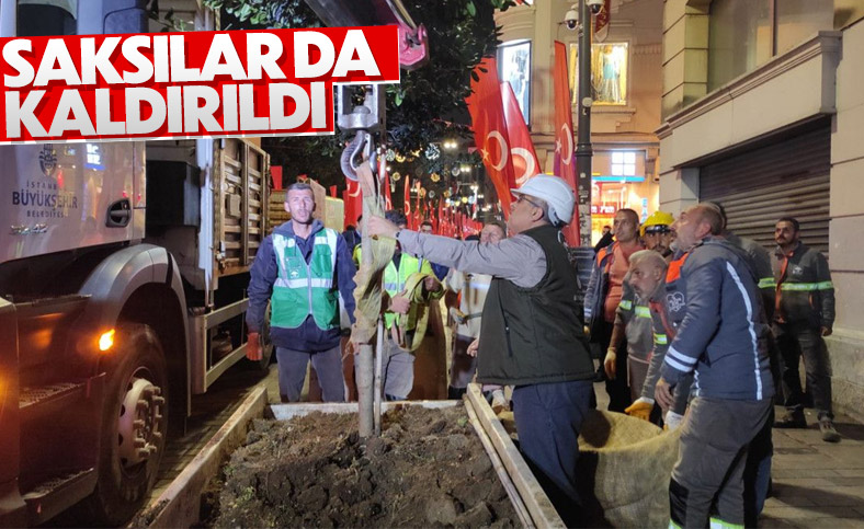 Taksim de beton saksılar da kaldırılıyor