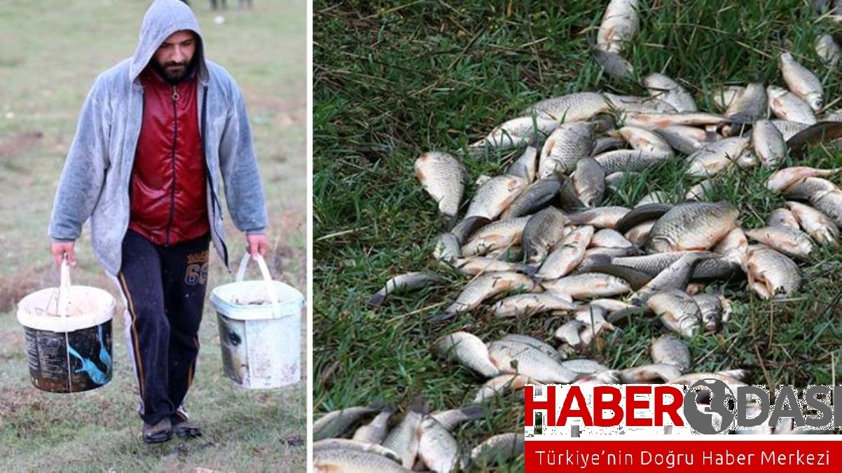 Sağanak sonrası sürüklenmişler Tarladan kova kova balık toplayıp göle bıraktılar