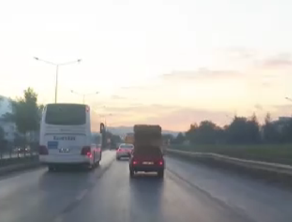 Otomobil üzerinde saman balyaları taşıdı