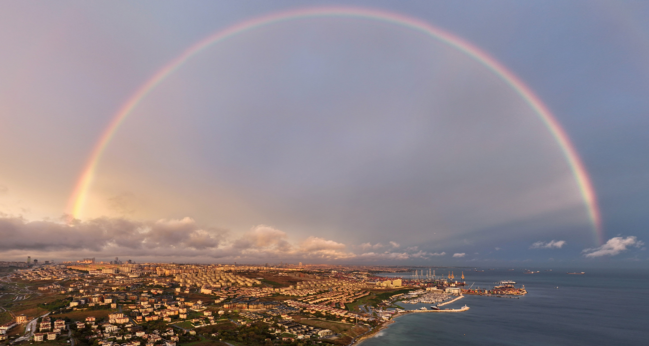 İstanbulda günbatımında ortaya çıkan gökkuşağı mest etti